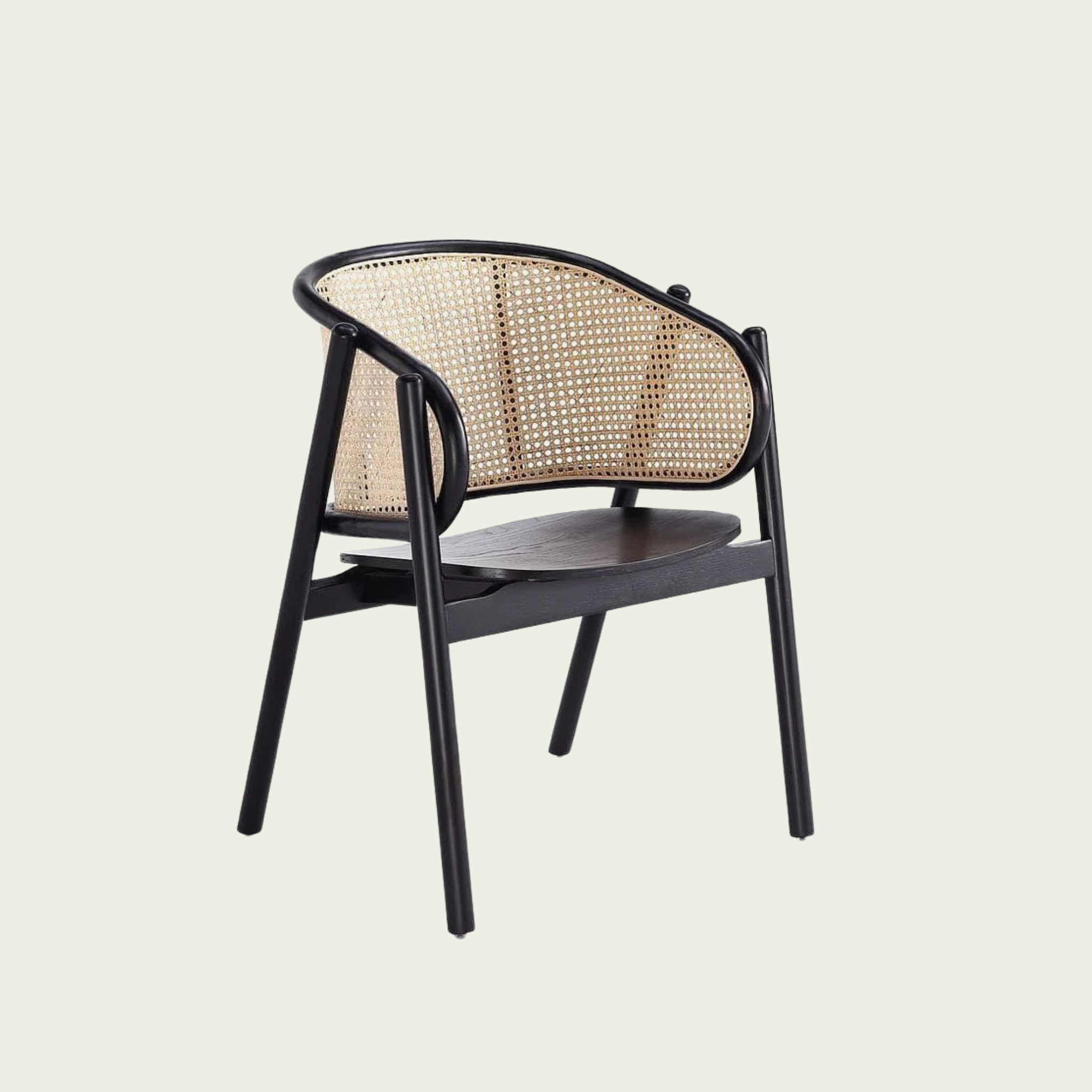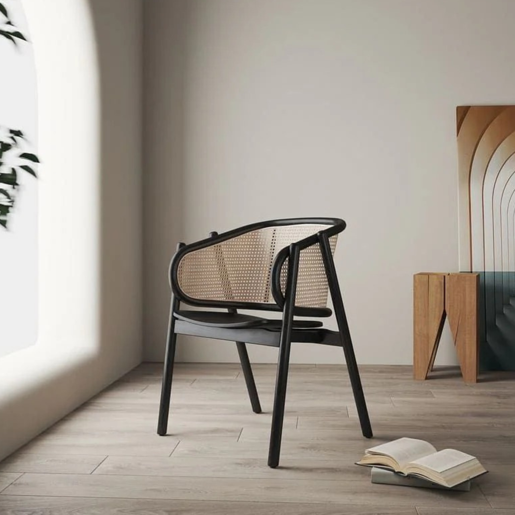 As sunlight filters through your windows, it catches the intricate patterns of the authentic rattan caning, casting delicate shadows that dance across your floor like nature's own artwork. the natural wood grain tells a unique story, one of organic beauty preserved and celebrated through thoughtful craftsmanship. This chair creates a psychological bridge between nostalgic comfort and contemporary sophistication. The clean lines of the solid ash wood frame are accented with authentic wood rattan along the sides and back. its curved silhouette invites relaxation while simultaneously elevating your interior design narrative, creating an environment that feels both curated and effortlessly natural.