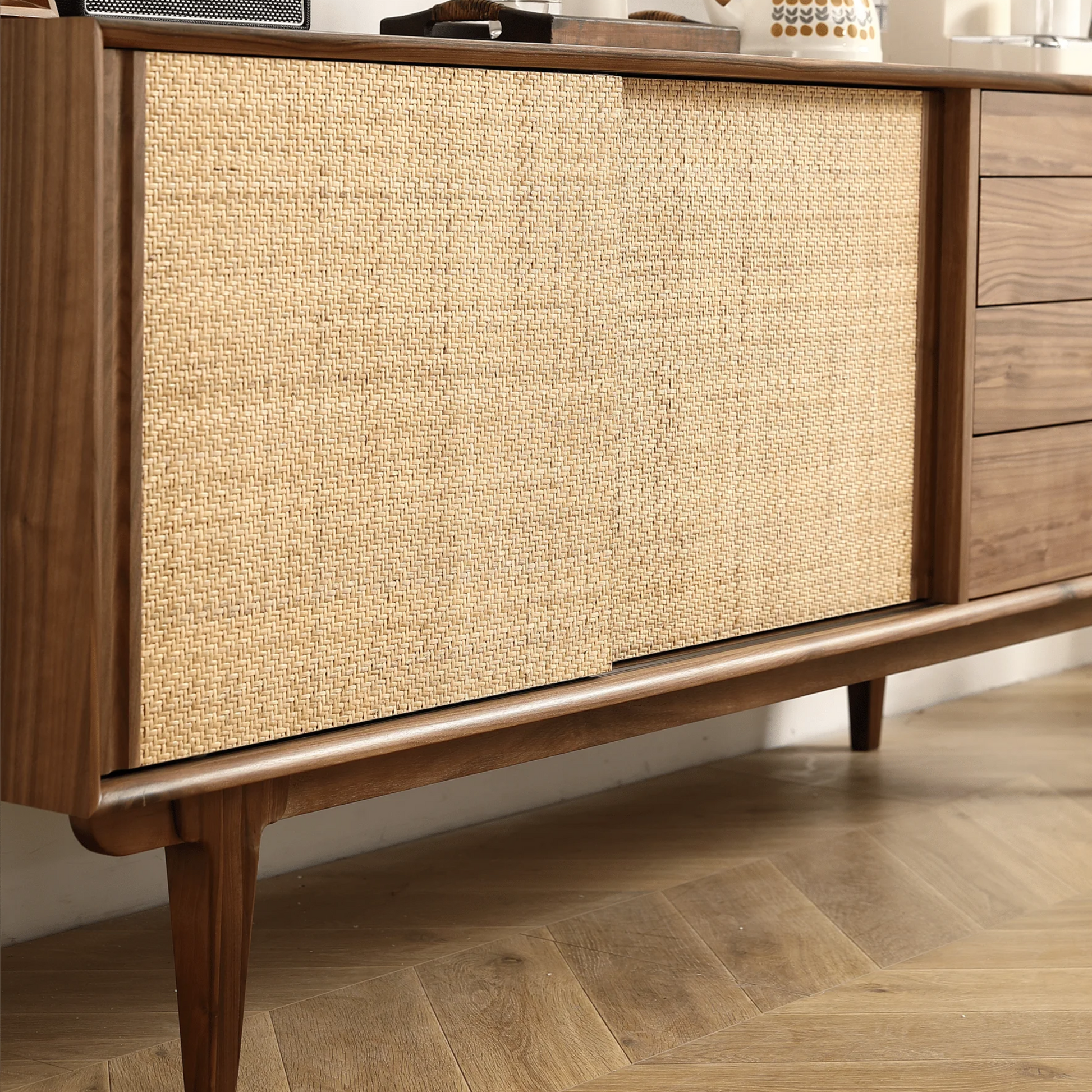 Rooted in nature and crafted for modern living, this 68.89" Retro Two-Door, Four-Drawer Cabinet brings a sense of timeless calm into your home. Made from rich black walnut wood and natural vine rattan, every detail celebrates organic beauty, artisanal craftsmanship, and mid-century sophistication.